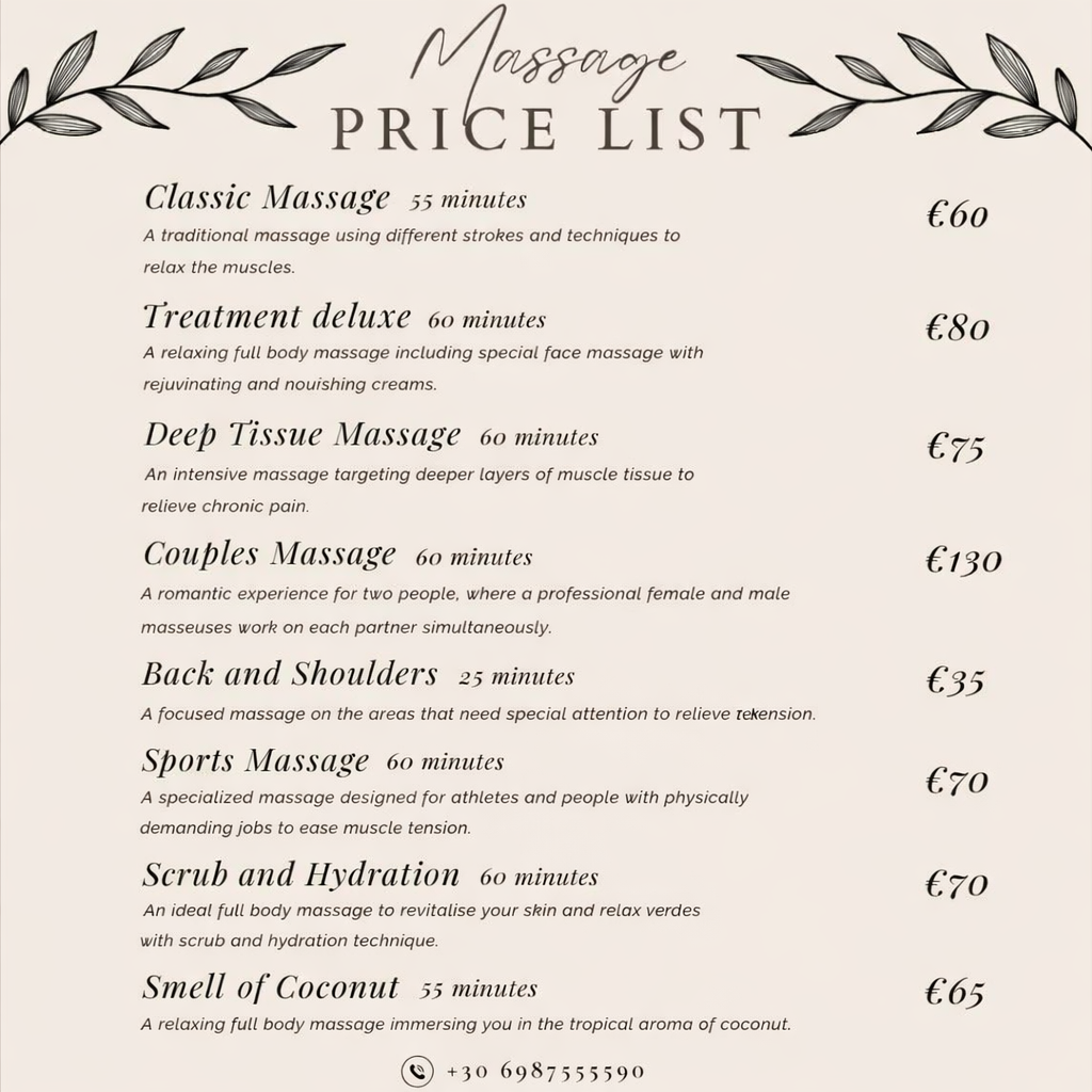 Massage & Wellness Crete offers an oasis of relaxation and rejuvenation in Crete. Our professional massage therapists are dedicated to providing you with the finest treatments to enhance your well-being.